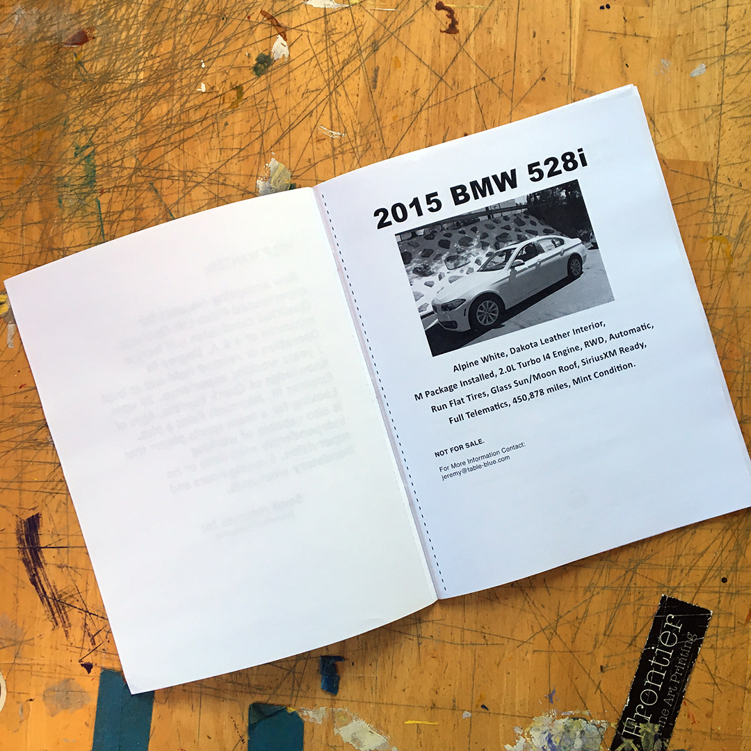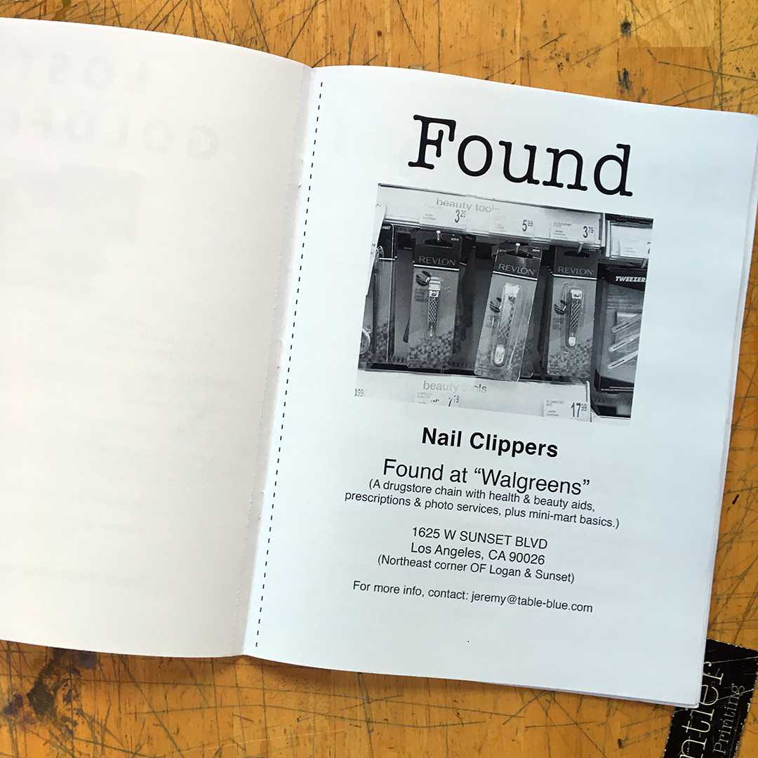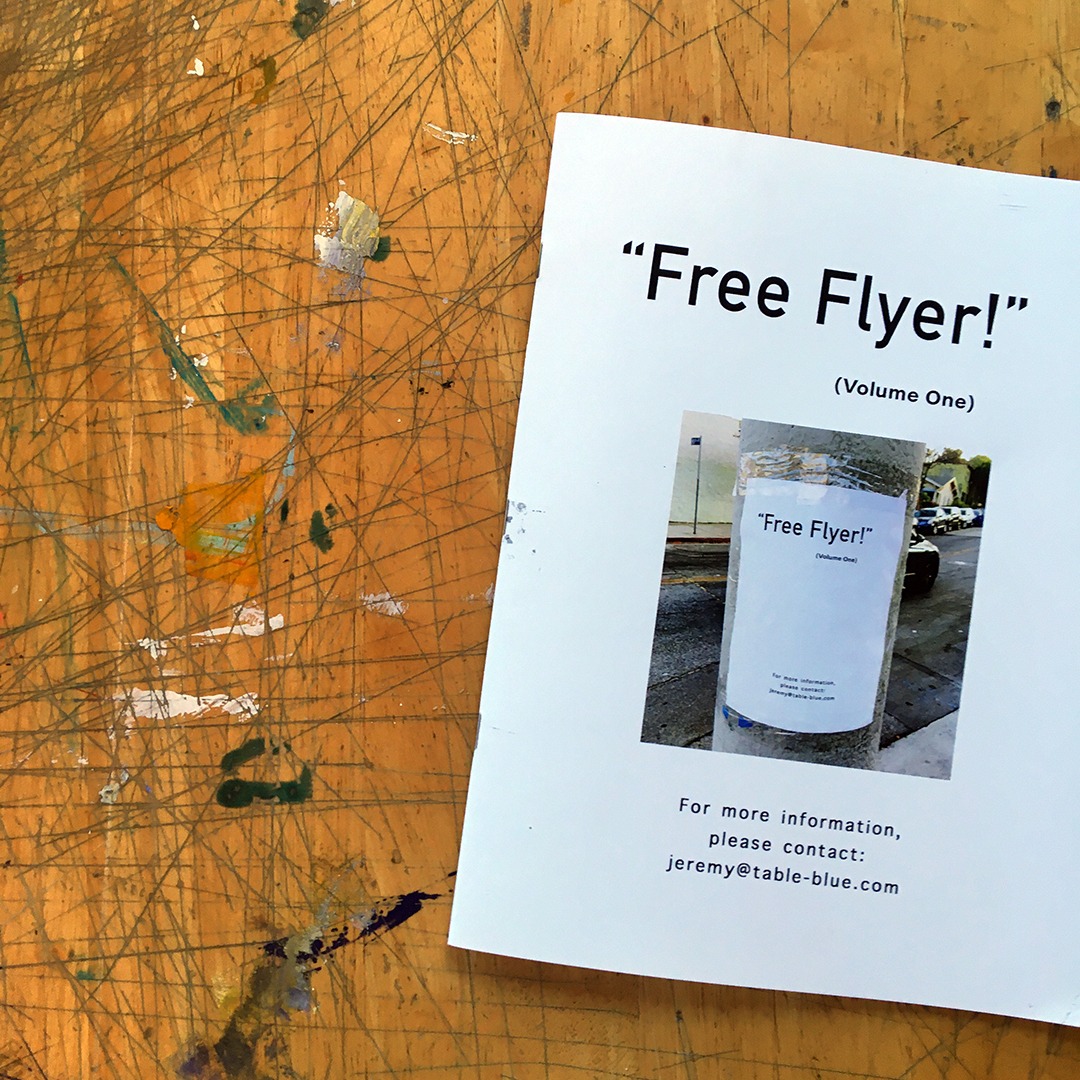 "Free Flyer!- Volume One" is a collection of recent works and revised classics from the flyer-based public art project of the same name, by Los Angeles-based artist, Jeremy Kennedy. Now found here, captured and bound in their natural Xerox habitat. Featuring 16 easy to use perforated, tear away pages. ~ 36 page (staple bound) ~ Measure: 11"h x 8.5"w ~ Edition: enough
