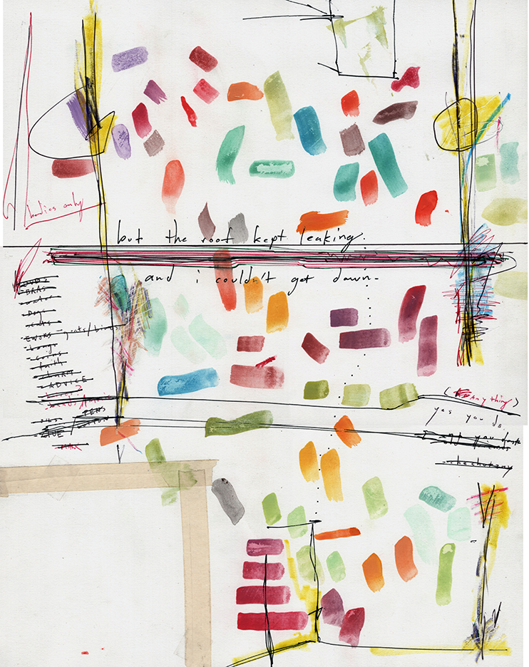 tell me which book to call (i'm still doing yr makeup) | acrylic, watercolor, ink, tape on paper | 17" x 14" | jeremy kennedy | 2018