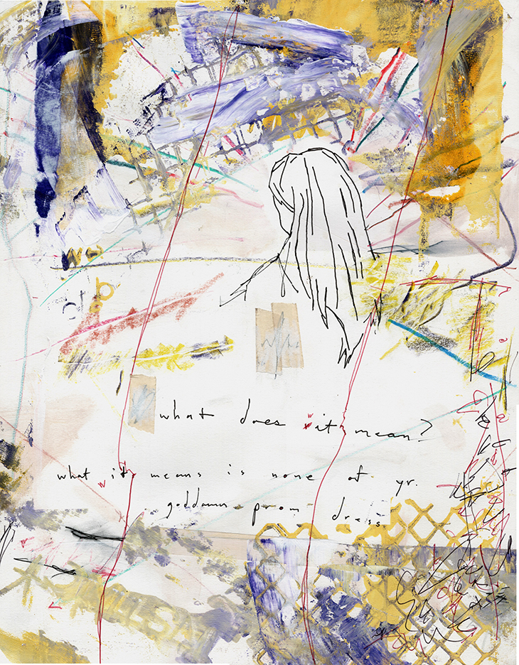 it's over here somewhere... (but i don't knw if you can see it) | acrylic, screenprint, pencil, ink, tape on paper | 18" x 14" | jeremy kennedy | 2018