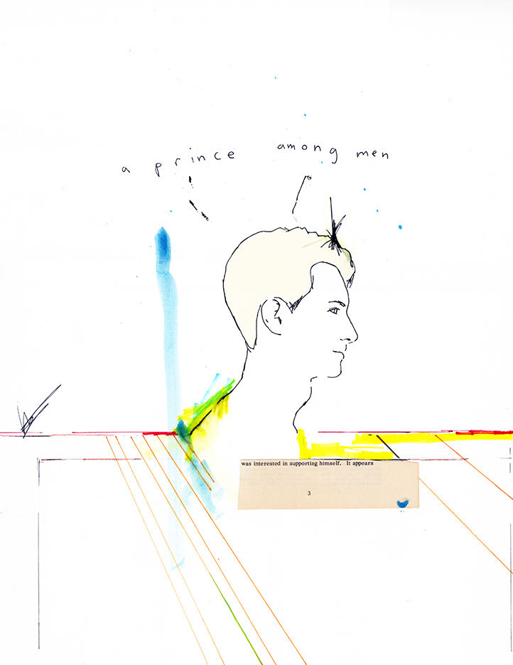 a prince among men... (was interested in supporting himself. it appears.) | ink, acrylic, silkscreen, collage on paper | 22" x 15" | 2019